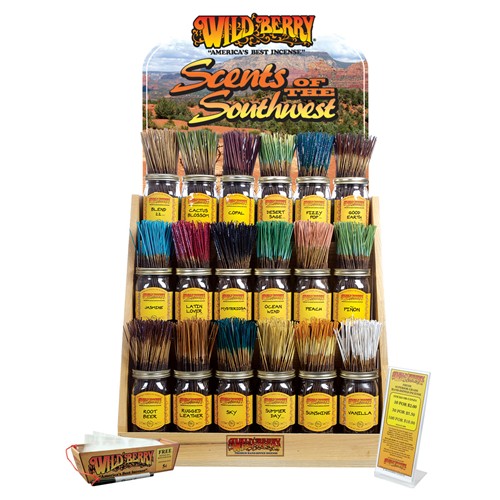 Put together your own Southwest Mix Kit! 18 fragrances of your choice. Kit contains: 2 bundles of each fragrance you choose; corresponding labeled display jars; 18 jar display rack; display materials, including baggie basket w/pen and P.O.P. sign, 400 zip top 2" x 12" bags; merchandising information folder; 1 customer sample bundle of 100 incense sticks; and 1 dozen wooden ash catchers. (Rack: 24" wide x 12" deep x 24" tall)